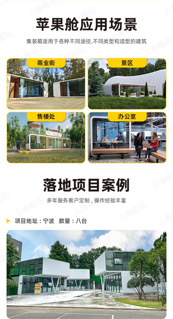 創(chuàng)意蘋(píng)果艙集裝箱拼裝集成房屋辦公室日常接待會(huì)議室戶外