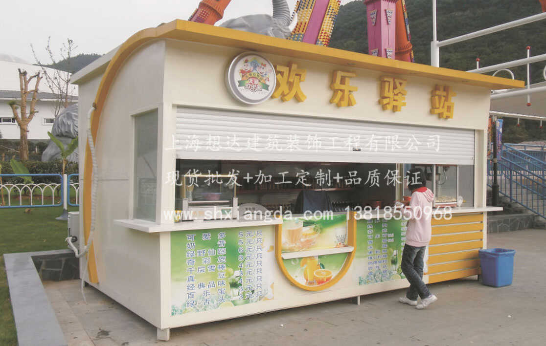 售貨亭是由亭頂、亭柱、還有售貨亭的框架組成的,售貨亭頂部采用鍍鋅鋼板折邊而成,采用獨特的防水工藝,外表層噴涂汽車漆,龍骨采用100*100鍍鋅方管焊接而成,鋼結構框架,牢固堅固,只需要在平時的使用中,多清掃,保持桌椅干凈,不要使用酸性溶劑清洗表面即可。
