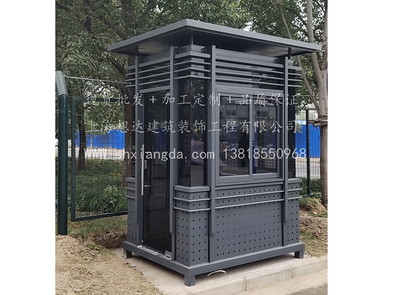 多媒體崗亭是由鍍鋅板板材墻體沖孔制作而成,表面排布這同等距離大小的圓孔,像極了藝術,所以稱之為多媒體沖孔崗亭。